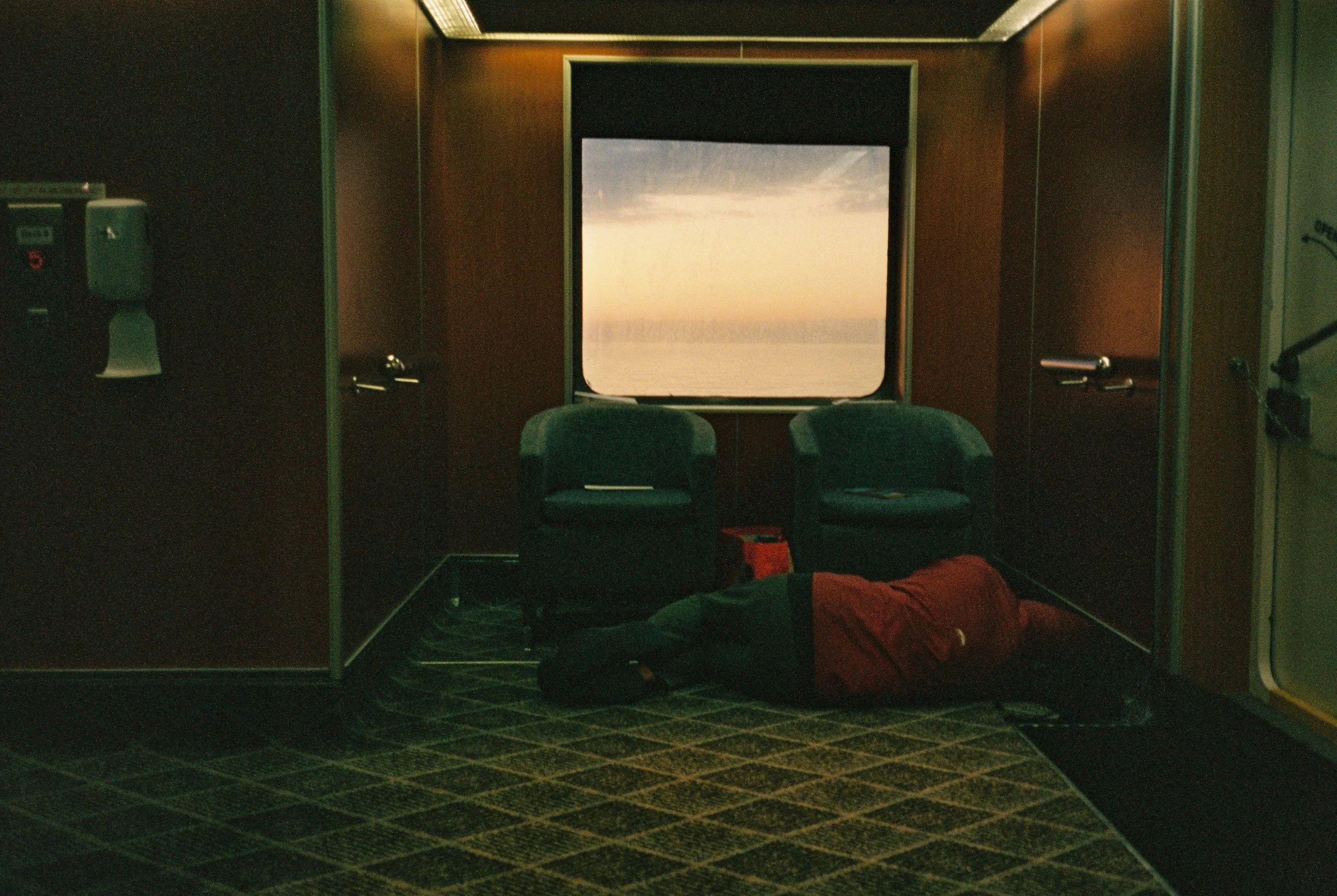 I couldn’t help but take these two photos. To me, they really sum up my experience of travelling on Scottish ferries, always trying to save a bit of money or booking last minute when there are no beds left. You know those limbo travel moments sitting in an airport on a layover, bobbing on a boat, or hurtling through the countryside on a train.